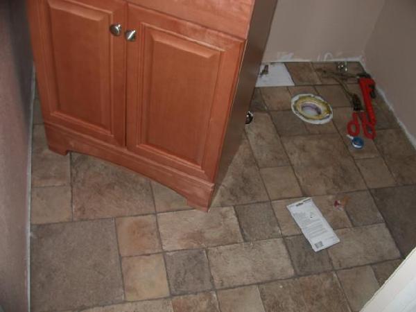 Thanks, here's basically the "done" shot. There is a new TP holder coming in on Wed, and a few minor touch ups (like the transition from the hall to the bath piece) and we have to let all the sealant set. BUT other than that... we're done.