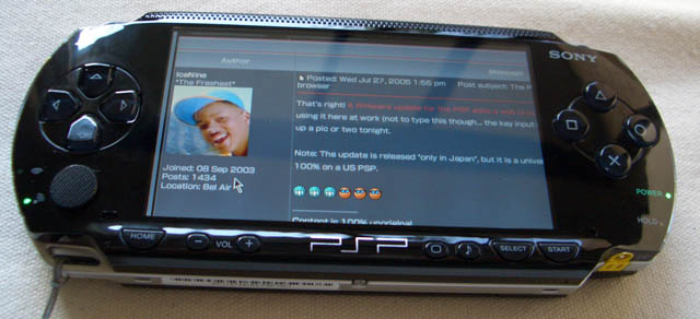 PostPosted: Wed, 27 Jul 2005 17:55:14    Post Subject: The PSP now has a web browser Reply with quote View Single Post