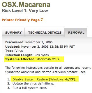 here's some more info on the MACarena Virus